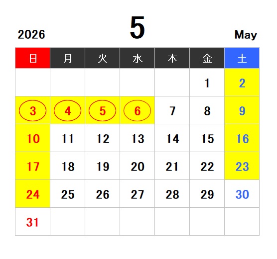 上記日程は年末年始の休館日となります。