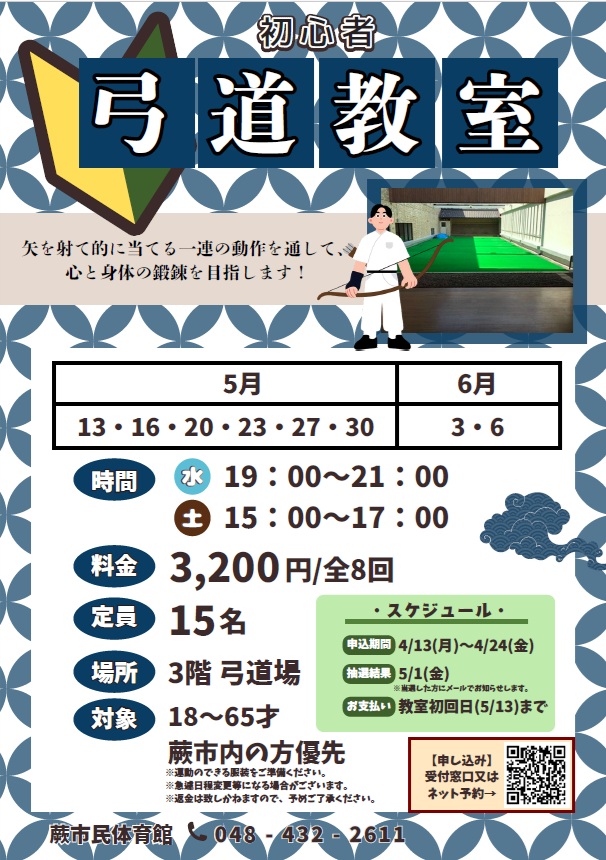 【初心者弓道教室】4/13申込開始!!
