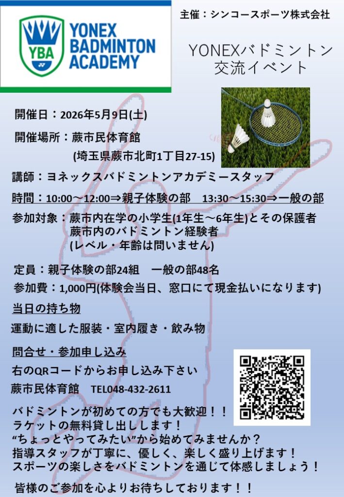 新教室【バドミントン教室】のお知らせ
